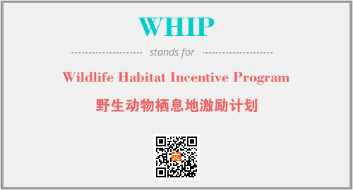 上述内容是“Wildlife Habitat Incentive Program”作为“WHIP”的缩写,解释为“野生动物栖息地激励计划”时的信息,以及英文缩略词WHIP所代表的英文单词,其对应的中文拼音、详细解释以及在英文中的流行度和相关分类、应用领域及应用示例等。