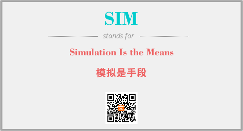 上述内容是“Simulation Is the Means”作为“SIM”的缩写,解释为“模拟是手段”时的信息,以及英文缩略词SIM所代表的英文单词,其对应的中文拼音、详细解释以及在英文中的流行度和相关分类、应用领域及应用示例等。
