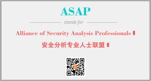 英文缩略词“ASAP”经常作为“Alliance of Security Analysis Professionals™”的英文缩写来使用,中文表示:“安全分析专业人士联盟™”。本文将详细介绍英文缩写词ASAP所代表英文单词,其对应的中文拼音、详细解释以及在英语中的流行度。此外,还有关于缩略词ASAP的分类、应用领域及相关应用示例等。