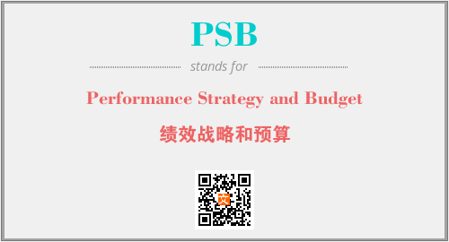 上述内容是“Performance Strategy and Budget”作为“PSB”的缩写,解释为“绩效战略和预算”时的信息,以及英文缩略词PSB所代表的英文单词,其对应的中文拼音、详细解释以及在英文中的流行度和相关分类、应用领域及应用示例等。