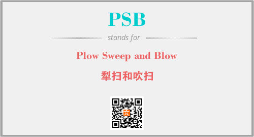 英文缩略词“PSB”经常作为“Plow Sweep and Blow”的英文缩写来使用,中文表示:“犁扫和吹扫”。本文将详细介绍英文缩写词PSB所代表英文单词,其对应的中文拼音、详细解释以及在英语中的流行度。此外,还有关于缩略词PSB的分类、应用领域及相关应用示例等。