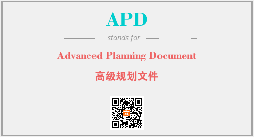 英文缩略词“APD”经常作为“Advanced Planning Document”的英文缩写来使用,中文表示:“高级规划文件”。本文将详细介绍英文缩写词APD所代表英文单词,其对应的中文拼音、详细解释以及在英语中的流行度。此外,还有关于缩略词APD的分类、应用领域及相关应用示例等。