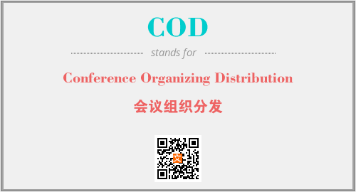 英文缩略词“COD”经常作为“Conference Organizing Distribution”的英文缩写来使用,中文表示:“会议组织分发”。本文将详细介绍英文缩写词COD所代表英文单词,其对应的中文拼音、详细解释以及在英语中的流行度。此外,还有关于缩略词COD的分类、应用领域及相关应用示例等。