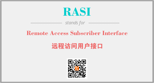 上述内容是“Remote Access Subscriber Interface”作为“RASI”的缩写,解释为“远程访问用户接口”时的信息,以及英文缩略词RASI所代表的英文单词,其对应的中文拼音、详细解释以及在英文中的流行度和相关分类、应用领域及应用示例等。