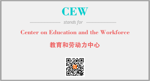 英文缩略词“CEW”经常作为“Center on Education and the Workforce”的英文缩写来使用,中文表示:“教育和劳动力中心”。本文将详细介绍英文缩写词CEW所代表英文单词,其对应的中文拼音、详细解释以及在英语中的流行度。此外,还有关于缩略词CEW的分类、应用领域及相关应用示例等。