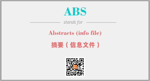 英文缩略词“ABS”经常作为“Abstracts (info file)”的英文缩写来使用,中文表示:“摘要(信息文件)”。本文将详细介绍英文缩写词ABS所代表英文单词,其对应的中文拼音、详细解释以及在英语中的流行度。此外,还有关于缩略词ABS的分类、应用领域及相关应用示例等。