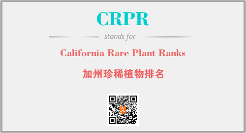 以上为California Rare Plant Ranks英文缩略词CRPR的中文解释,以及该英文缩写在英语的流行度、分类和应用领域方面的信息。