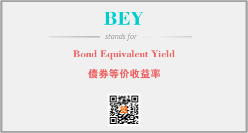 上述内容是“Bond Equivalent Yield”作为“BEY”的缩写,解释为“债券等价收益率”时的信息,以及英文缩略词BEY所代表的英文单词,其对应的中文拼音、详细解释以及在英文中的流行度和相关分类、应用领域及应用示例等。