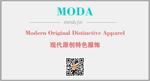 上述内容是“Modern Original Distinctive Apparel”作为“MODA”的缩写,解释为“现代原创特色服饰”时的信息,以及英文缩略词MODA所代表的英文单词,其对应的中文拼音、详细解释以及在英文中的流行度和相关分类、应用领域及应用示例等。