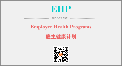 英文缩略词“EHP”经常作为“Employer Health Programs”的英文缩写来使用,中文表示:“雇主健康计划”。本文将详细介绍英文缩写词EHP所代表英文单词,其对应的中文拼音、详细解释以及在英语中的流行度。此外,还有关于缩略词EHP的分类、应用领域及相关应用示例等。