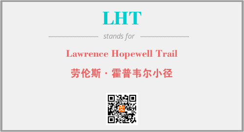 上述内容是“Lawrence Hopewell Trail”作为“LHT”的缩写,解释为“劳伦斯·霍普韦尔小径”时的信息,以及英文缩略词LHT所代表的英文单词,其对应的中文拼音、详细解释以及在英文中的流行度和相关分类、应用领域及应用示例等。