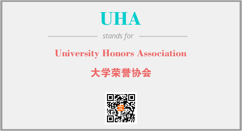 英文缩略词“UHA”经常作为“University Honors Association”的英文缩写来使用,中文表示:“大学荣誉协会”。本文将详细介绍英文缩写词UHA所代表英文单词,其对应的中文拼音、详细解释以及在英语中的流行度。此外,还有关于缩略词UHA的分类、应用领域及相关应用示例等。
