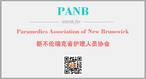 上述内容是“Paramedics Association of New Brunswick”作为“PANB”的缩写,解释为“新不伦瑞克省护理人员协会”时的信息,以及英文缩略词PANB所代表的英文单词,其对应的中文拼音、详细解释以及在英文中的流行度和相关分类、应用领域及应用示例等。