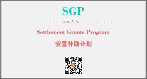 上述内容是“Settlement Grants Program”作为“SGP”的缩写,解释为“安置补助计划”时的信息,以及英文缩略词SGP所代表的英文单词,其对应的中文拼音、详细解释以及在英文中的流行度和相关分类、应用领域及应用示例等。