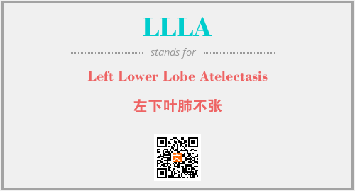 上述内容是“Left Lower Lobe Atelectasis”作为“LLLA”的缩写,解释为“左下叶肺不张”时的信息,以及英文缩略词LLLA所代表的英文单词,其对应的中文拼音、详细解释以及在英文中的流行度和相关分类、应用领域及应用示例等。