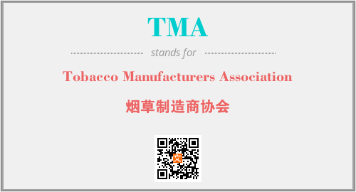 上述内容是“Tobacco Manufacturers Association”作为“TMA”的缩写,解释为“烟草制造商协会”时的信息,以及英文缩略词TMA所代表的英文单词,其对应的中文拼音、详细解释以及在英文中的流行度和相关分类、应用领域及应用示例等。