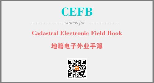 英文缩略词“CEFB”经常作为“Cadastral Electronic Field Book”的英文缩写来使用,中文表示:“地籍电子外业手簿”。本文将详细介绍英文缩写词CEFB所代表英文单词,其对应的中文拼音、详细解释以及在英语中的流行度。此外,还有关于缩略词CEFB的分类、应用领域及相关应用示例等。