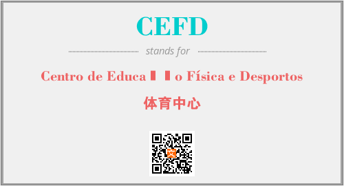 上述内容是“Centro de Educação Física e Desportos”作为“CEFD”的缩写,解释为“体育中心”时的信息,以及英文缩略词CEFD所代表的英文单词,其对应的中文拼音、详细解释以及在英文中的流行度和相关分类、应用领域及应用示例等。