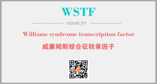 英文缩略词“WSTF”经常作为“Williams syndrome transcription factor”的英文缩写来使用,中文表示:“威廉姆斯综合征转录因子”。本文将详细介绍英文缩写词WSTF所代表英文单词,其对应的中文拼音、详细解释以及在英语中的流行度。此外,还有关于缩略词WSTF的分类、应用领域及相关应用示例等。