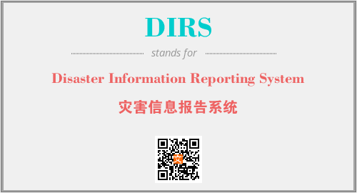 上述内容是“Disaster Information Reporting System”作为“DIRS”的缩写,解释为“灾害信息报告系统”时的信息,以及英文缩略词DIRS所代表的英文单词,其对应的中文拼音、详细解释以及在英文中的流行度和相关分类、应用领域及应用示例等。