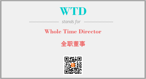 上述内容是“Whole Time Director”作为“WTD”的缩写,解释为“全职董事”时的信息,以及英文缩略词WTD所代表的英文单词,其对应的中文拼音、详细解释以及在英文中的流行度和相关分类、应用领域及应用示例等。