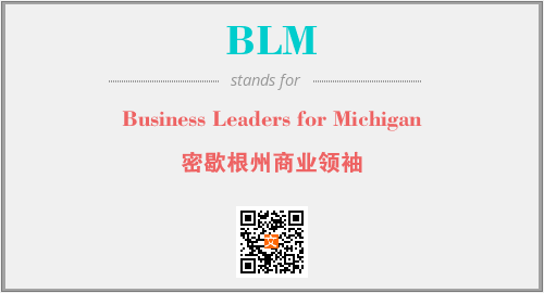 英文缩略词“BLM”经常作为“Business Leaders for Michigan”的英文缩写来使用,中文表示:“密歇根州商业领袖”。本文将详细介绍英文缩写词BLM所代表英文单词,其对应的中文拼音、详细解释以及在英语中的流行度。此外,还有关于缩略词BLM的分类、应用领域及相关应用示例等。