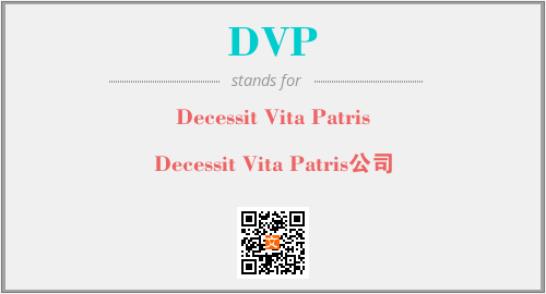 上述内容是“Decessit Vita Patris”作为“DVP”的缩写,解释为“Decessit Vita Patris公司”时的信息,以及英文缩略词DVP所代表的英文单词,其对应的中文拼音、详细解释以及在英文中的流行度和相关分类、应用领域及应用示例等。