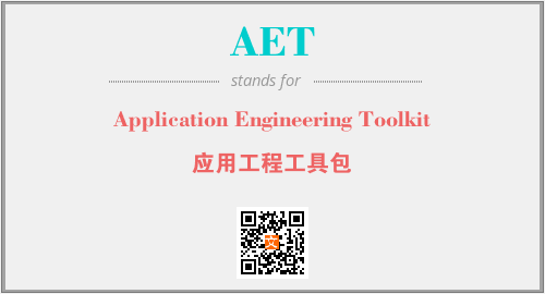 英文缩略词“AET”经常作为“Application Engineering Toolkit”的英文缩写来使用,中文表示:“应用工程工具包”。本文将详细介绍英文缩写词AET所代表英文单词,其对应的中文拼音、详细解释以及在英语中的流行度。此外,还有关于缩略词AET的分类、应用领域及相关应用示例等。