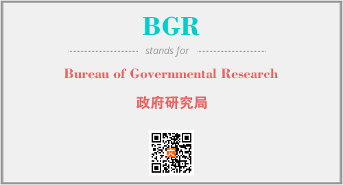 上述内容是“Bureau of Governmental Research”作为“BGR”的缩写,解释为“政府研究局”时的信息,以及英文缩略词BGR所代表的英文单词,其对应的中文拼音、详细解释以及在英文中的流行度和相关分类、应用领域及应用示例等。