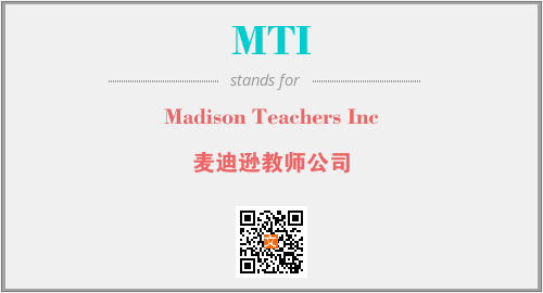 上述内容是“Madison Teachers Inc”作为“MTI”的缩写,解释为“麦迪逊教师公司”时的信息,以及英文缩略词MTI所代表的英文单词,其对应的中文拼音、详细解释以及在英文中的流行度和相关分类、应用领域及应用示例等。
