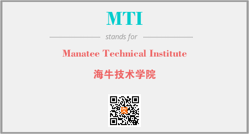 英文缩略词“MTI”经常作为“Manatee Technical Institute”的英文缩写来使用,中文表示:“海牛技术学院”。本文将详细介绍英文缩写词MTI所代表英文单词,其对应的中文拼音、详细解释以及在英语中的流行度。此外,还有关于缩略词MTI的分类、应用领域及相关应用示例等。