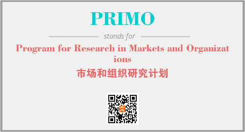以上为Program for Research in Markets and Organizations英文缩略词PRIMO的中文解释,以及该英文缩写在英语的流行度、分类和应用领域方面的信息。