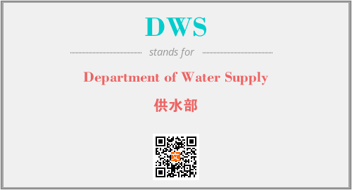 上述内容是“Department of Water Supply”作为“DWS”的缩写,解释为“供水部”时的信息,以及英文缩略词DWS所代表的英文单词,其对应的中文拼音、详细解释以及在英文中的流行度和相关分类、应用领域及应用示例等。