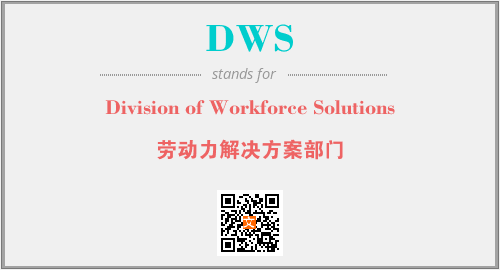 上述内容是“Division of Workforce Solutions”作为“DWS”的缩写,解释为“劳动力解决方案部门”时的信息,以及英文缩略词DWS所代表的英文单词,其对应的中文拼音、详细解释以及在英文中的流行度和相关分类、应用领域及应用示例等。