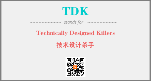 英文缩略词“TDK”经常作为“Technically Designed Killers”的英文缩写来使用,中文表示:“技术设计杀手”。本文将详细介绍英文缩写词TDK所代表英文单词,其对应的中文拼音、详细解释以及在英语中的流行度。此外,还有关于缩略词TDK的分类、应用领域及相关应用示例等。