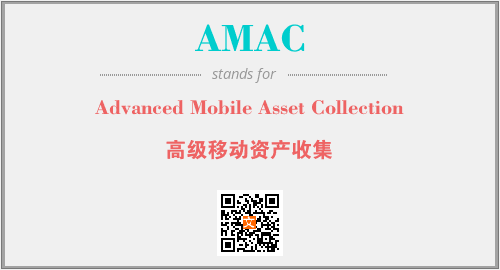 上述内容是“Advanced Mobile Asset Collection”作为“AMAC”的缩写,解释为“高级移动资产收集”时的信息,以及英文缩略词AMAC所代表的英文单词,其对应的中文拼音、详细解释以及在英文中的流行度和相关分类、应用领域及应用示例等。