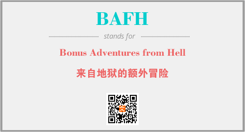 英文缩略词“BAFH”经常作为“Bonus Adventures from Hell”的英文缩写来使用,中文表示:“来自地狱的额外冒险”。本文将详细介绍英文缩写词BAFH所代表英文单词,其对应的中文拼音、详细解释以及在英语中的流行度。此外,还有关于缩略词BAFH的分类、应用领域及相关应用示例等。