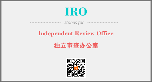 上述内容是“Independent Review Office”作为“IRO”的缩写,解释为“独立审查办公室”时的信息,以及英文缩略词IRO所代表的英文单词,其对应的中文拼音、详细解释以及在英文中的流行度和相关分类、应用领域及应用示例等。