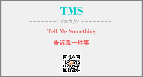 英文缩略词“TMS”经常作为“Tell Me Something”的英文缩写来使用,中文表示:“告诉我一件事”。本文将详细介绍英文缩写词TMS所代表英文单词,其对应的中文拼音、详细解释以及在英语中的流行度。此外,还有关于缩略词TMS的分类、应用领域及相关应用示例等。