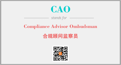 以上为Compliance Advisor Ombudsman英文缩略词CAO的中文解释,以及该英文缩写在英语的流行度、分类和应用领域方面的信息。