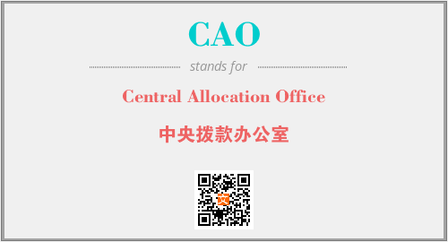 上述内容是“Central Allocation Office”作为“CAO”的缩写,解释为“中央拨款办公室”时的信息,以及英文缩略词CAO所代表的英文单词,其对应的中文拼音、详细解释以及在英文中的流行度和相关分类、应用领域及应用示例等。