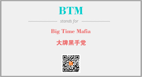 英文缩略词“BTM”经常作为“Big Time Mafia”的英文缩写来使用,中文表示:“大牌黑手党”。本文将详细介绍英文缩写词BTM所代表英文单词,其对应的中文拼音、详细解释以及在英语中的流行度。此外,还有关于缩略词BTM的分类、应用领域及相关应用示例等。