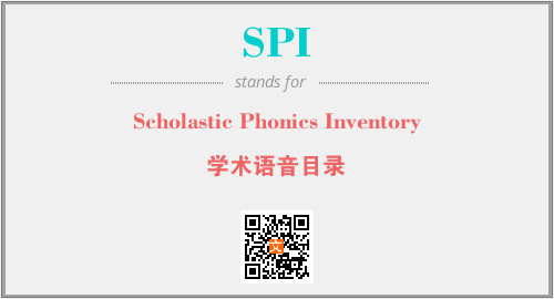 以上为Scholastic Phonics Inventory英文缩略词SPI的中文解释,以及该英文缩写在英语的流行度、分类和应用领域方面的信息。