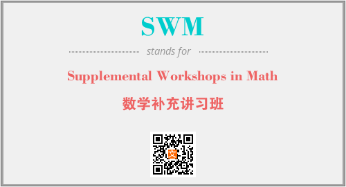 英文缩略词“SWM”经常作为“Supplemental Workshops in Math”的英文缩写来使用,中文表示:“数学补充讲习班”。本文将详细介绍英文缩写词SWM所代表英文单词,其对应的中文拼音、详细解释以及在英语中的流行度。此外,还有关于缩略词SWM的分类、应用领域及相关应用示例等。