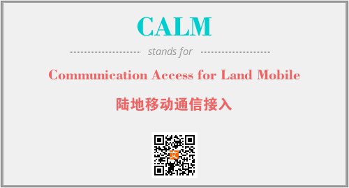 英文缩略词“CALM”经常作为“Communication Access for Land Mobile”的英文缩写来使用,中文表示:“陆地移动通信接入”。本文将详细介绍英文缩写词CALM所代表英文单词,其对应的中文拼音、详细解释以及在英语中的流行度。此外,还有关于缩略词CALM的分类、应用领域及相关应用示例等。