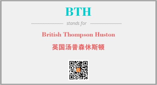 英文缩略词“BTH”经常作为“British Thompson Huston”的英文缩写来使用,中文表示:“英国汤普森休斯顿”。本文将详细介绍英文缩写词BTH所代表英文单词,其对应的中文拼音、详细解释以及在英语中的流行度。此外,还有关于缩略词BTH的分类、应用领域及相关应用示例等。
