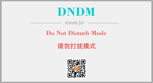 英文缩略词“DNDM”经常作为“Do Not Disturb Mode”的英文缩写来使用,中文表示:“请勿打扰模式”。本文将详细介绍英文缩写词DNDM所代表英文单词,其对应的中文拼音、详细解释以及在英语中的流行度。此外,还有关于缩略词DNDM的分类、应用领域及相关应用示例等。