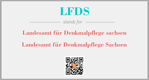 英文缩略词“LFDS”经常作为“Landesamt für Denkmalpflege sachsen”的英文缩写来使用,中文表示:“Landesamt für Denkmalpflege Sachsen”。本文将详细介绍英文缩写词LFDS所代表英文单词,其对应的中文拼音、详细解释以及在英语中的流行度。此外,还有关于缩略词LFDS的分类、应用领域及相关应用示例等。