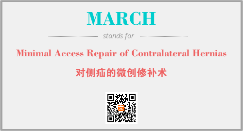英文缩略词“MARCH”经常作为“Minimal Access Repair of Contralateral Hernias”的英文缩写来使用,中文表示:“对侧疝的微创修补术”。本文将详细介绍英文缩写词MARCH所代表英文单词,其对应的中文拼音、详细解释以及在英语中的流行度。此外,还有关于缩略词MARCH的分类、应用领域及相关应用示例等。