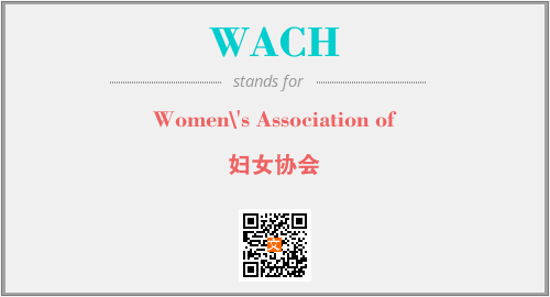 上述内容是“Women\'s Association of”作为“WACH”的缩写,解释为“妇女协会”时的信息,以及英文缩略词WACH所代表的英文单词,其对应的中文拼音、详细解释以及在英文中的流行度和相关分类、应用领域及应用示例等。